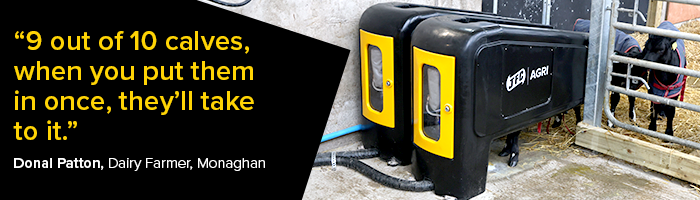 On the outskirts of Carrickmacross, County Monaghan, Donal Patton is in the middle of his first season using the JFC Evolution Automatic Calf Feeder. Calving 140 cows, he knew that as numbers climbed, mornings and evenings would quickly become stretched, especially on days when help was thin on the ground.